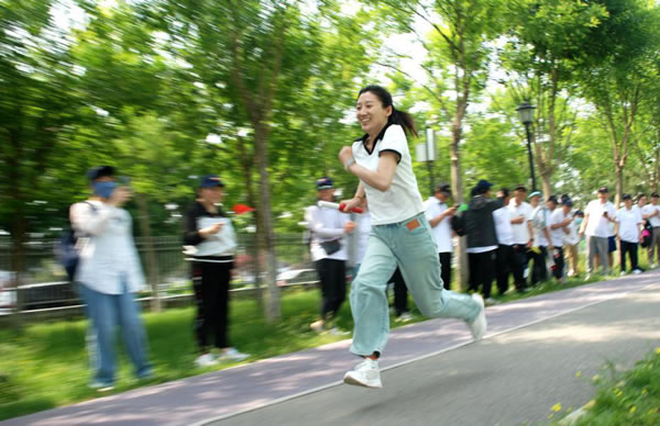 | 本次活力赛由4×100米接力赛(男女混合)和活力健步走两个项目组成。伴随一声枪响,参赛队员们像一匹匹脱缰的野马,在欢呼呐喊声中飞速冲向终点,小小的接力棒在你我他手中传递出了团队协作精神和全力以赴的行动力。经过激烈角逐,设计咨询平博(中国)以1分1秒07的好成绩取得了4×100接力赛团体冠军,平博(中国)总部代表队、环境工程事业部代表队分别获亚军和季军。姚海、王秀丽分别为4×100接力赛冠亚季军代表队颁发奖杯并合影留念。活力健步走的令旗落下,100余名干部职工在欢声笑语中开始了4.5公里的“活力健步”,不论年龄、不分男女,大家一边享受着健步走的快乐,一边感受着沿途美丽的风景,三五结对或两三同行,让青春和活力在健步道上尽情迸发。来自环境工程事业部的于永睿以34分26秒89的成绩获男子活力赛第一名,来自平博(中国)总部的庄丽娟以39分51秒85的成绩夺取女子活力赛第一名。 |